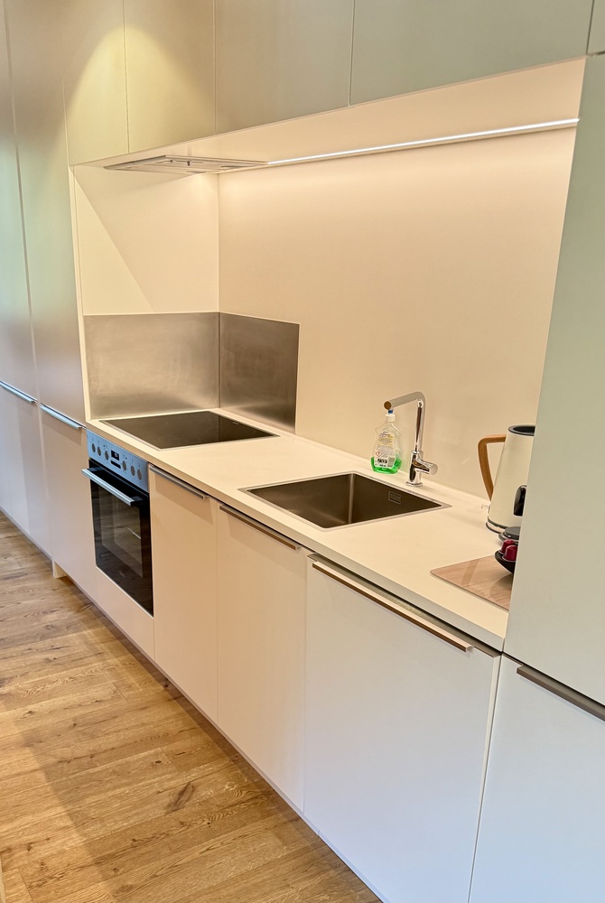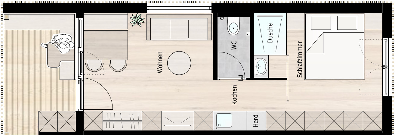 Unsere Apartments sind modern in hochwertiger Holzoptik und mit Liebe ausgestattet. Optimal ist es für je zwei Gäste im Boxspringbett. Bei bis zu vier Gästen bietet das bequeme Schlafsofa in (1,40x2,00) einen weiteren Schlafplatz.