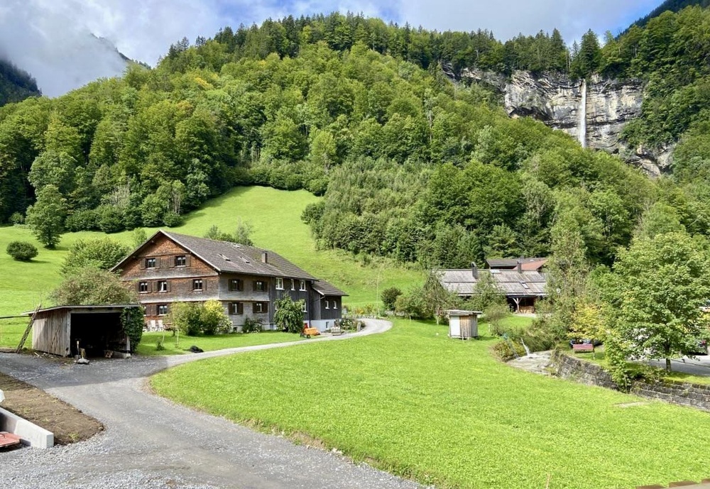 Die herrliche Kulisse aus Bergwelt und Wasserfall