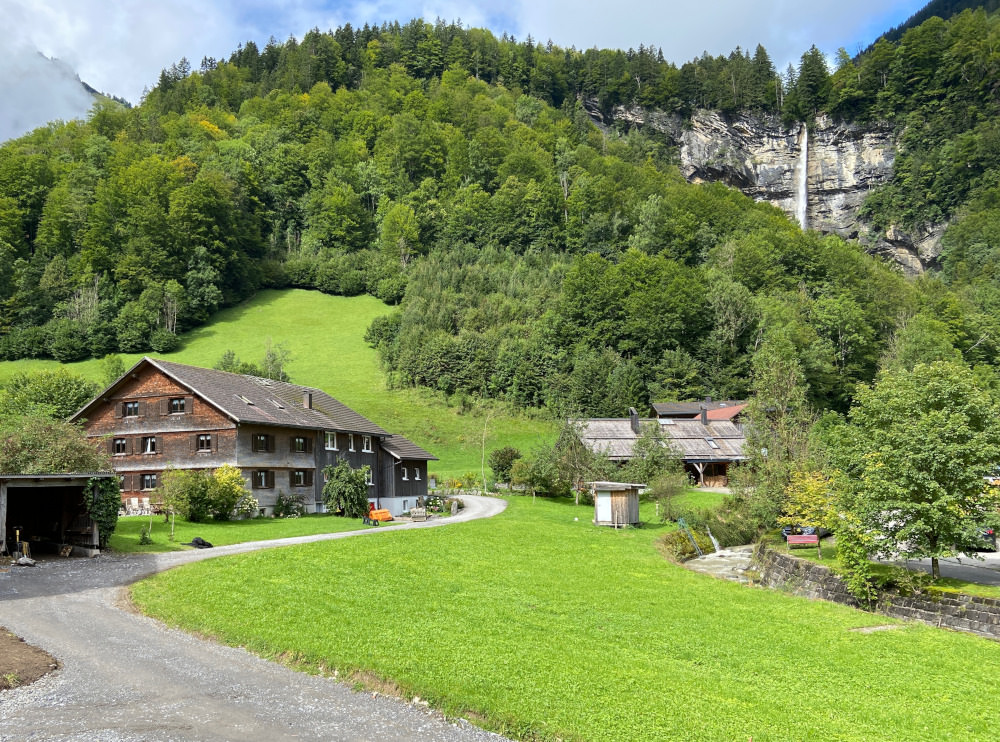Die herrliche Kulisse aus Bergwelt und Wasserfall